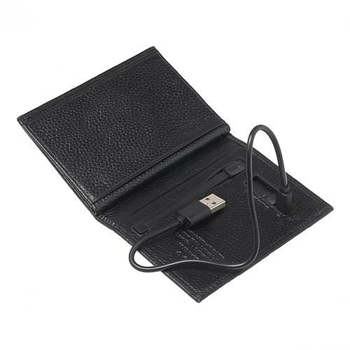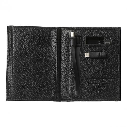 Practical and chic, made from genuine grained black leather for a luxurious feel, the Cerruti 1881 Power Bank card holder is the ultimate accessory because with it you'll never run out of phone and your credit cards will be neatly stored. !