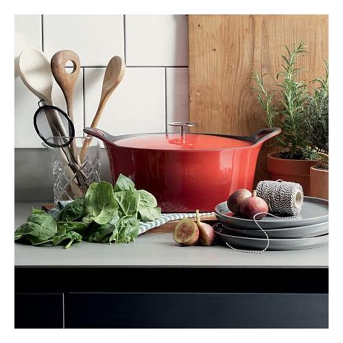 Ce modèle réinvente la traditionnelle cocotte en fonte de fer émaillée. Compatible tous feux, la cocotte optimise la répartition de la chaleur sur les aliments. Les parois émaillées garantissent sa solidité et sa durée dans le temps. Astucieux, son couvercle intégré aux parois évite tout débordement lors de la cuisson.