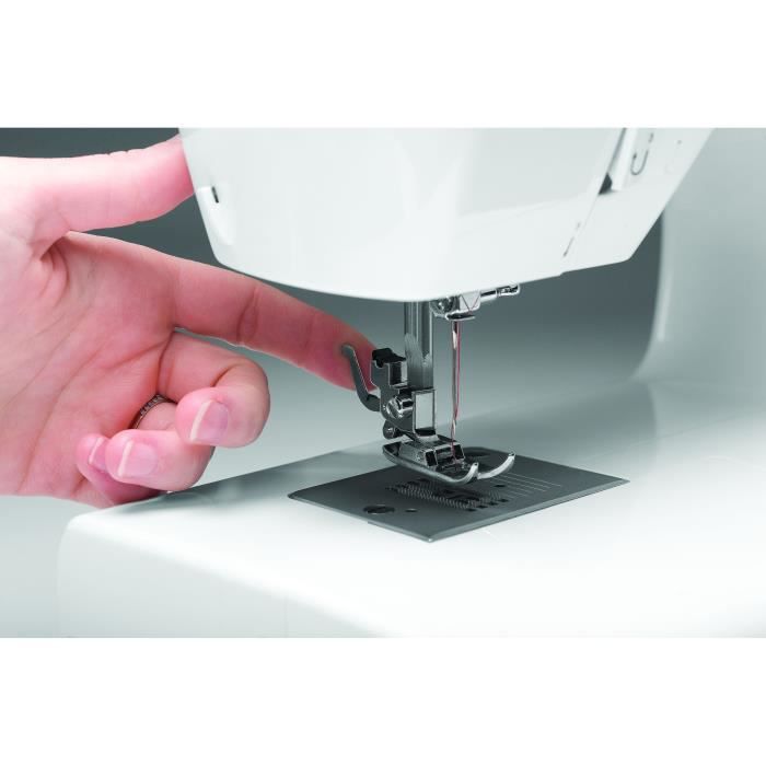 Enfilage simplifié, marche arrieèe. Boutonnière automatique en 4 temps. Éclairage du plan à coudre. Fiabilité et robustesse