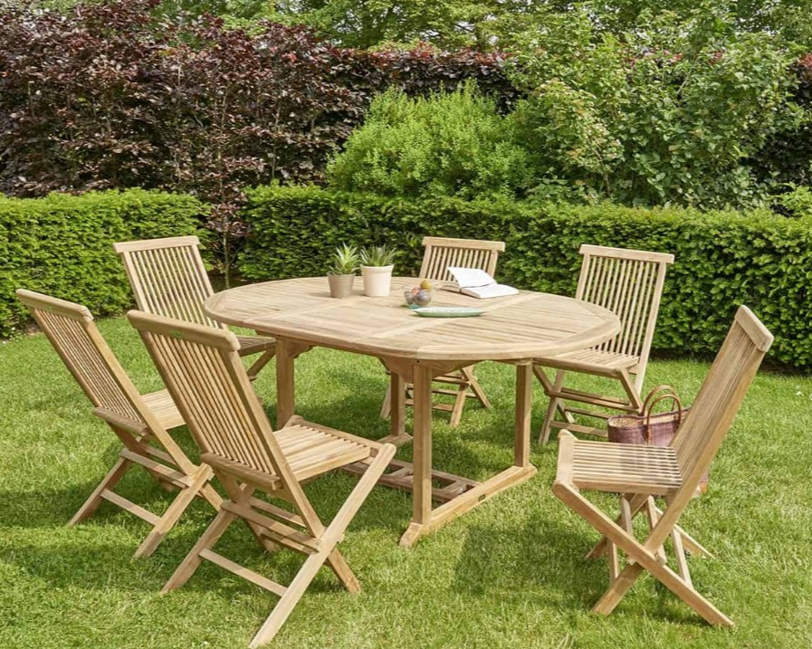 Table de jardin ovale en teck huilé