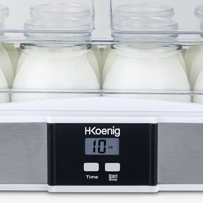 Fournie avec 12 pots en verre de 160 mL au design vintage et leurs couvercles hermétiques, vous pouvez conserver vos yaourts au frais pendant plusieurs jours. Les pots sont compatibles au lave-vaisselle.