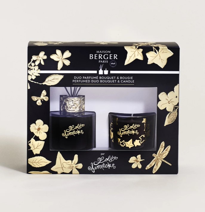 Le Duo mini Bouquet & Bougie Lolita Lempicka Black Edition est une réédition élégante et audacieuse, tant par ses produits que par son packaging. Sur le bouquet parfumé comme sur la bougie, le verre laqué noir laisse ressortir la sérigraphie dorée du nom Lolita Lempicka ou encore les feuilles de lierre gravées sur la bague. Un côté sauvage et naturel qui donne du caractère au design. Le coffret aussi reprend ses différents codes en plus de la libellule chère à la créatrice. Vos sens sont en alertes avec la fragrance « Mon Premier parfum » qui se diffuse dans votre intérieur avec ce Duo mini Bouquet & Bougie Lolita Lempicka Black Edition. Les notes parfumées de la feuille de réglisse, de la fleur de violette et du caramel transforment cette composition olfactive en un véritable pêché mignon. Partez à la découverte des gestuelles Maison Berger Paris. Pour les adeptes, ce mini duo est aussi disponible en parme et en transparent !