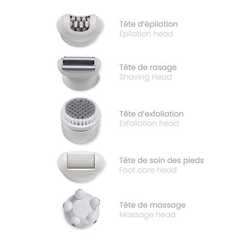 Avec son design élégant et sa polyvalence 5-en-1, il est bien plus qu’un simple épilateur : c’est un véritable centre de soins personnel. Il permet de gagner du temps et d’économiser sur les rendez-vous en institut, tout en prenant soin de votre peau au quotidien. Que vous souhaitiez une peau lisse, une exfoliation en profondeur ou un moment de détente, ce set multifonction est l’allié idéal pour une routine beauté complète à la maison.