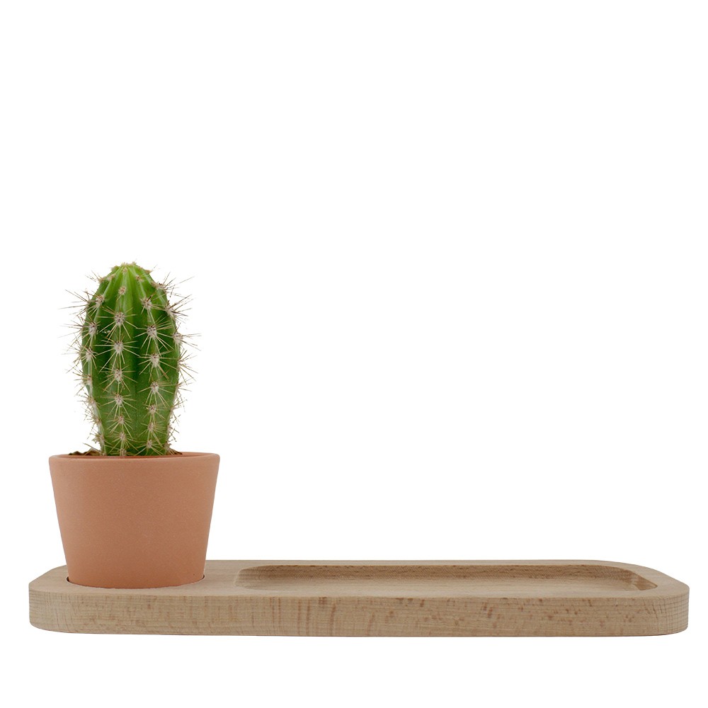 Ce plateau accueille un pot en terre cuite de format Ø70 mm x H60 mm, qui renforce l’aspect naturel et artisanal du produit. Le pot est accompagné d’un cactus, une plante résistante et facile d’entretien, idéale pour créer une ambiance zen et verdoyante sans contraintes. Cette combinaison allie esthétique et praticité, tout en favorisant la présence végétale dans le quotidien.