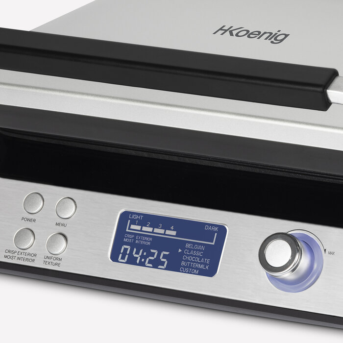 Grâce à sa puissance de 1600 watts, il vous garantit une cuisson homogène de la pâte en un temps record. Avec ces deux choix de cuisson, préparez deux gaufres moelleuses et croustillantes simultanément de 12 x 12,5 cm. Gaufre belge, classique, chocolat, babeurre et personnalisable sont les 5 fonctions que vous proposent l'appareil. Le dorage varie selon 7 niveaux, il y en a pour tous les goûts. Son revêtement antiadhésif permet de retirer facilement les gaufres. Il est également doté de gouttières anti débordement ce qui facilite le nettoyage.