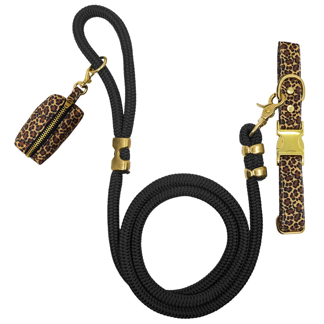 En choisissant le Kit Le Léopard - Laisse noire, vous optez pour un accessoire qui met en avant le caractère unique et l'élégance de votre chien. Que ce soit pour une promenade en ville ou une escapade au parc, ce kit est bien plus qu'un simple ensemble d'accessoires de promenade. Il représente un véritable statement de style et de qualité, reflétant votre souci du détail et votre amour pour votre compagnon fidèle.