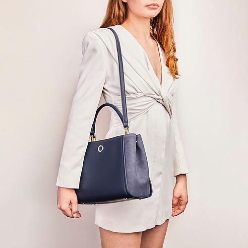 Deux compartiments attachés, jouant sur le contraste de matières lisses et suédées