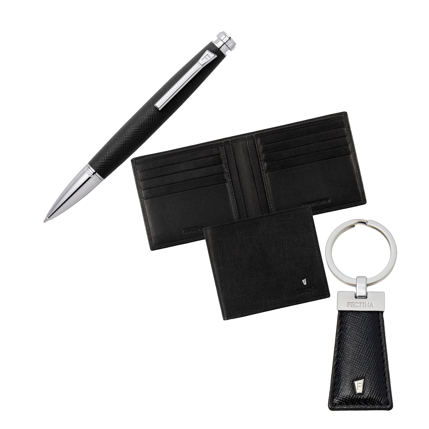 Cette parure trio incarne l’esprit sportif et élégant de la marque Festina. Inspirée par l’univers du cyclisme, elle reprend les codes esthétiques de la célèbre collection de montres Chronobike : lignes dynamiques, finitions métalliques et allure racée. Le stylo bille, au corps en métal brossé noir et attributs chromés, évoque la robustesse et la précision. Son embout supérieur rappelle subtilement le design des montres Festina, ajoutant une touche distinctive et raffinée.