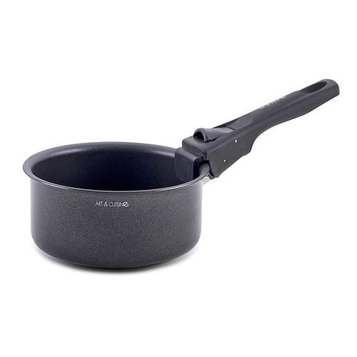 Optez pour la Batterie de cuisine Art & Cuisine, un ensemble complet de 18 pieces en aluminium avec revêtement antiadhérent, conçu pour tous les types de feux, y compris l'induction.