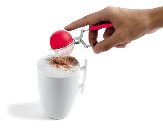A sprinkler and a tea tongs combined, this is a clever tool that saves you space in your drawers. Fill its flexible silicone shell with cocoa, icing sugar or spices, turn the tongs over and sprinkle your cakes and drinks with the precision of a chef. Or use it as a tea ball that is easy to empty (press on the shell is enough) and clean. Clever, right?