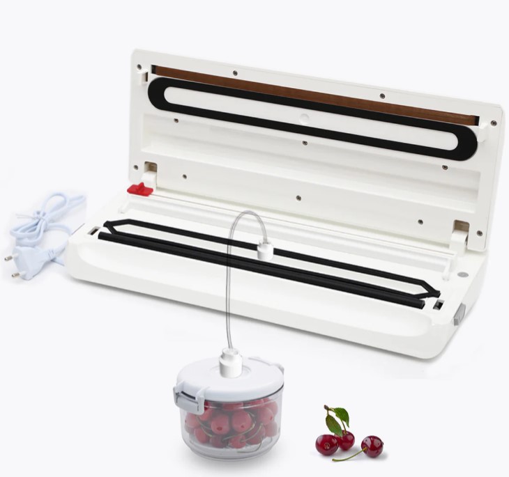 Fonctionne avec sachets, rouleaux et récipients, pour la nourriture sèche ou humide