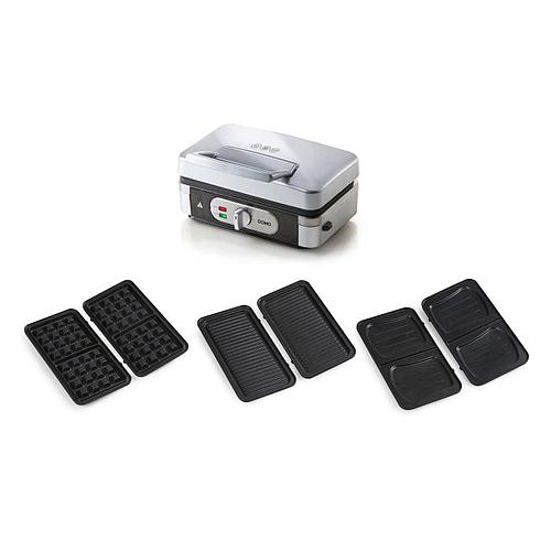 Ses trois jeux de plaques de cuisson amovibles rendent la machine à snacks multifonctionnelle. La température peut être régulée et les plaques de cuisson ont un revêtement antiadhésif de qualité, simplifiant son utilisation et son nettoyage. Les deux voyants lumineux indiquent quand l’appareil est allumé/éteint et quand il est prêt à l’emploi.