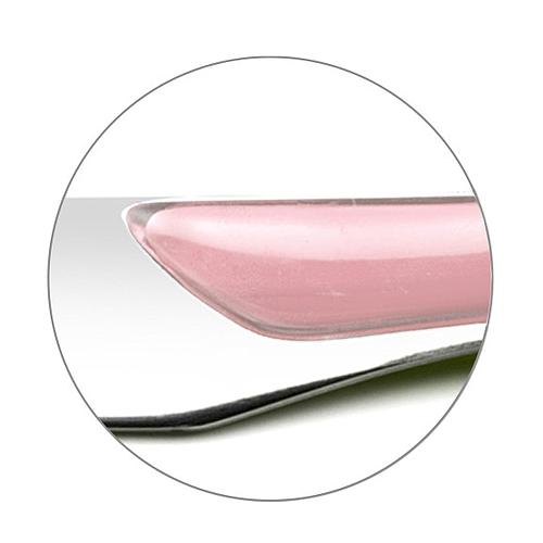 Les manches en ABS rose pastel, associés à une finition brillante et des lames microdentées, offrent un équilibre parfait entre élégance et praticité.