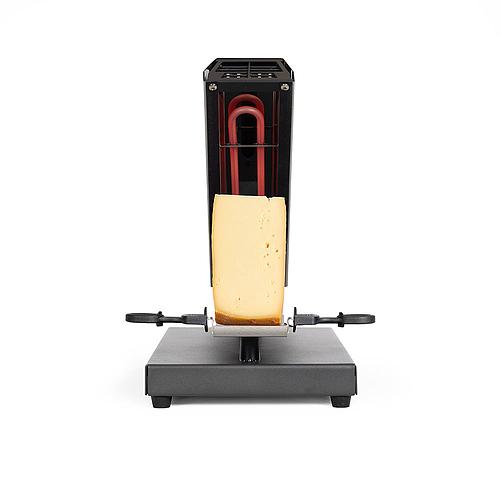 Cet appareil à raclette incarne l’esprit des soirées conviviales à l’ancienne. Conçu pour accueillir une demi-meule ou un quart de meule de fromage, il permet de retrouver le plaisir d’une raclette traditionnelle, comme en chalet. Sa capacité est idéale pour 6 à 8 convives, ce qui en fait un choix parfait pour les repas en famille ou entre amis. Son design sobre et élégant en acier inoxydable noir s’intègre facilement à toutes les tables, tout en mettant en valeur le fromage en cours de fonte.