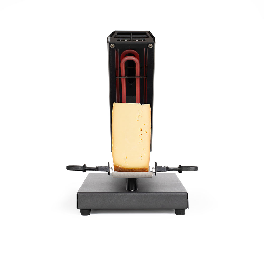 Doté d’une puissance de 600 watts et d’un thermostat ajustable, cet appareil garantit une fonte rapide et homogène du fromage, en moins de 3 minutes. Le socle porte-fromage est amovible, coulissant et pivotant à 360°, ce qui permet d’ajuster facilement la position du fromage par rapport à la source de chaleur. Cette flexibilité assure une cuisson optimale et une manipulation sécurisée, même en pleine dégustation. Deux spatules en bois sont également fournies pour racler le fromage fondu avec précision.