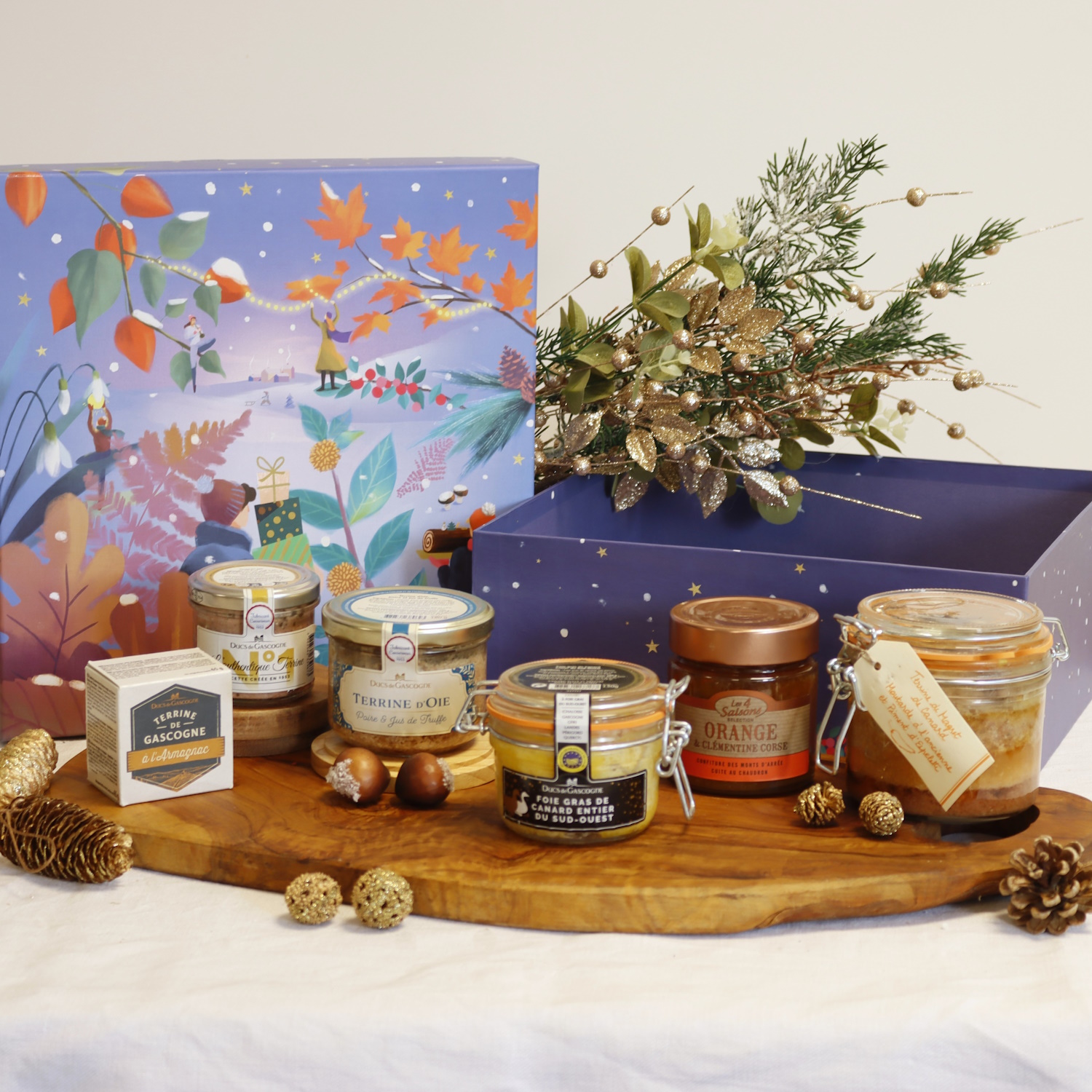 Présenté dans une élégante boîte de 30 x 30 x 12 cm, ce coffret Hiver en fête des Ducs de Gascogne incarne l’art de vivre du Sud-Ouest à travers une sélection raffinée de mets savoureux. Ce coffret est une invitation à la découverte de saveurs authentiques et généreuses, parfait pour les fêtes de fin d’année ou pour offrir un moment de plaisir gourmand.