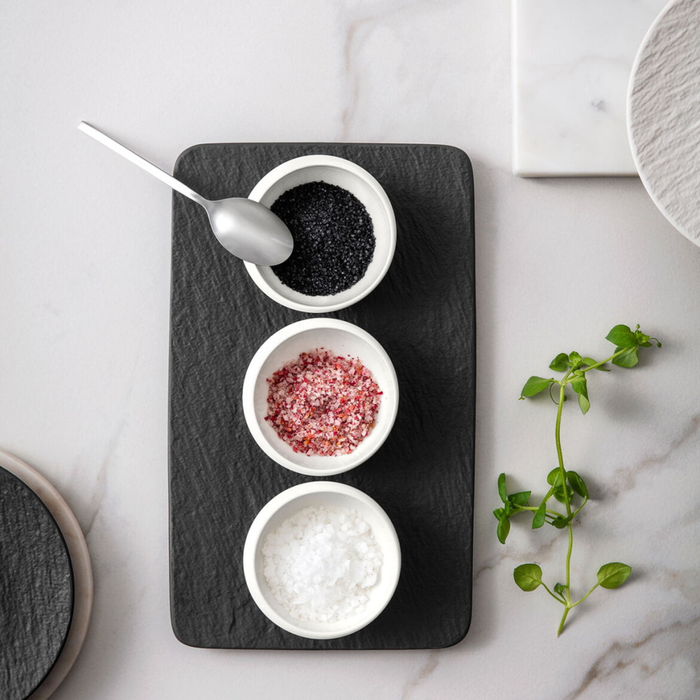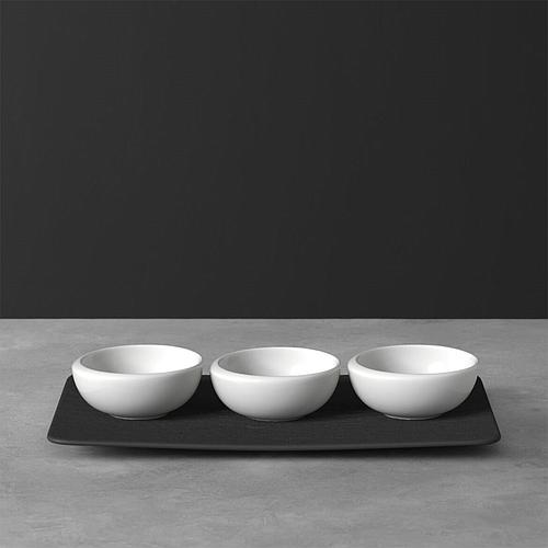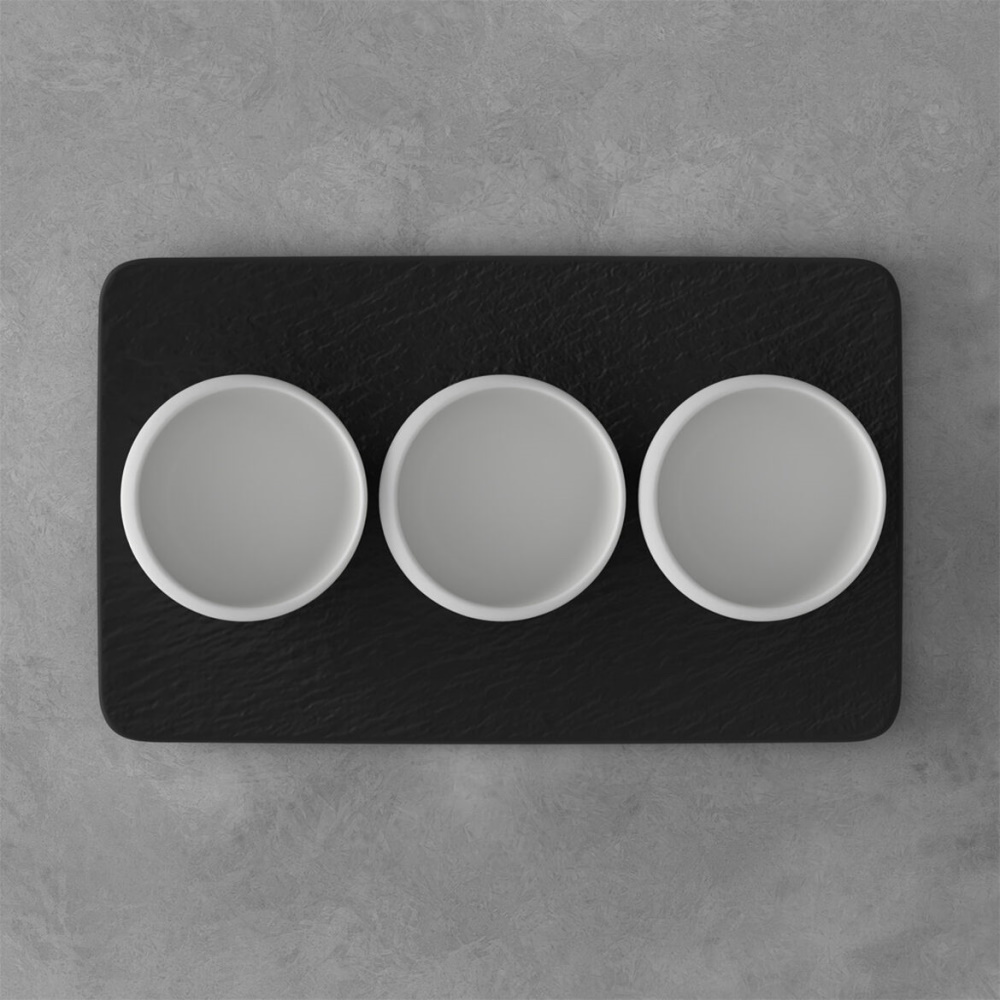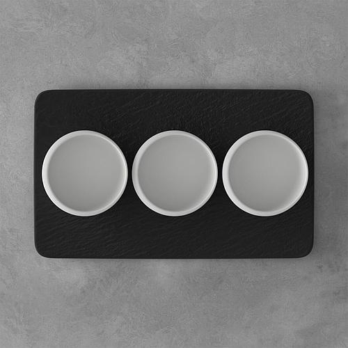 Une touche délicate et épurée pour cet ensemble de 3 coupelles en porcelaine blanche et son plateau/assiette en ardoise de la marque Villeroy & Boch. Inspiré de la beauté de la lune, cet set vous charmera par son design élégant et fonctionnelle.