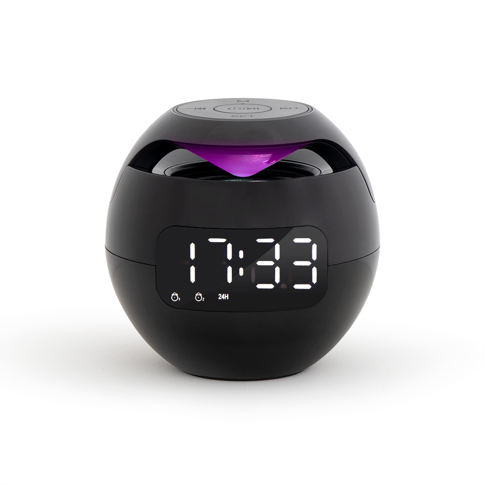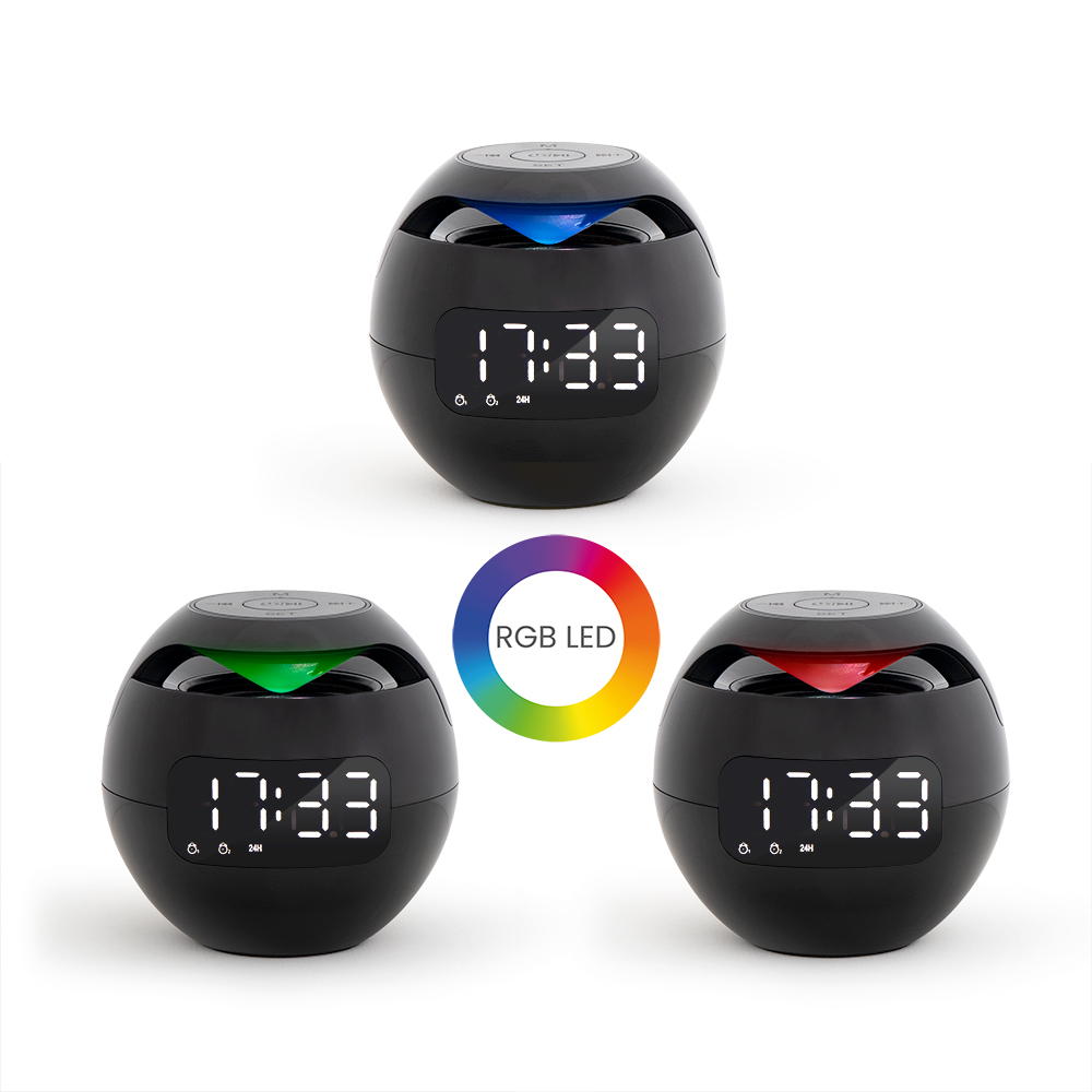 Aussi joli avec sa forme ronde, que pratique, cette enceinte nomade est aussi une horloge/ éveil avec deux alarmes et possède Micro intégré pour répondre aux appels téléphoniques en mains libres.