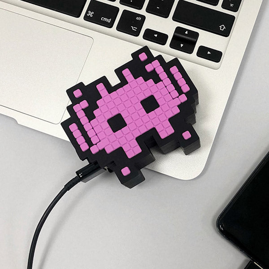 Il est pénible d'être à court d'énergie au moment où l'on en a le plus besoin. Évitez cette expérience en emportant avec vous cette batterie de secours Envahisseurs !
