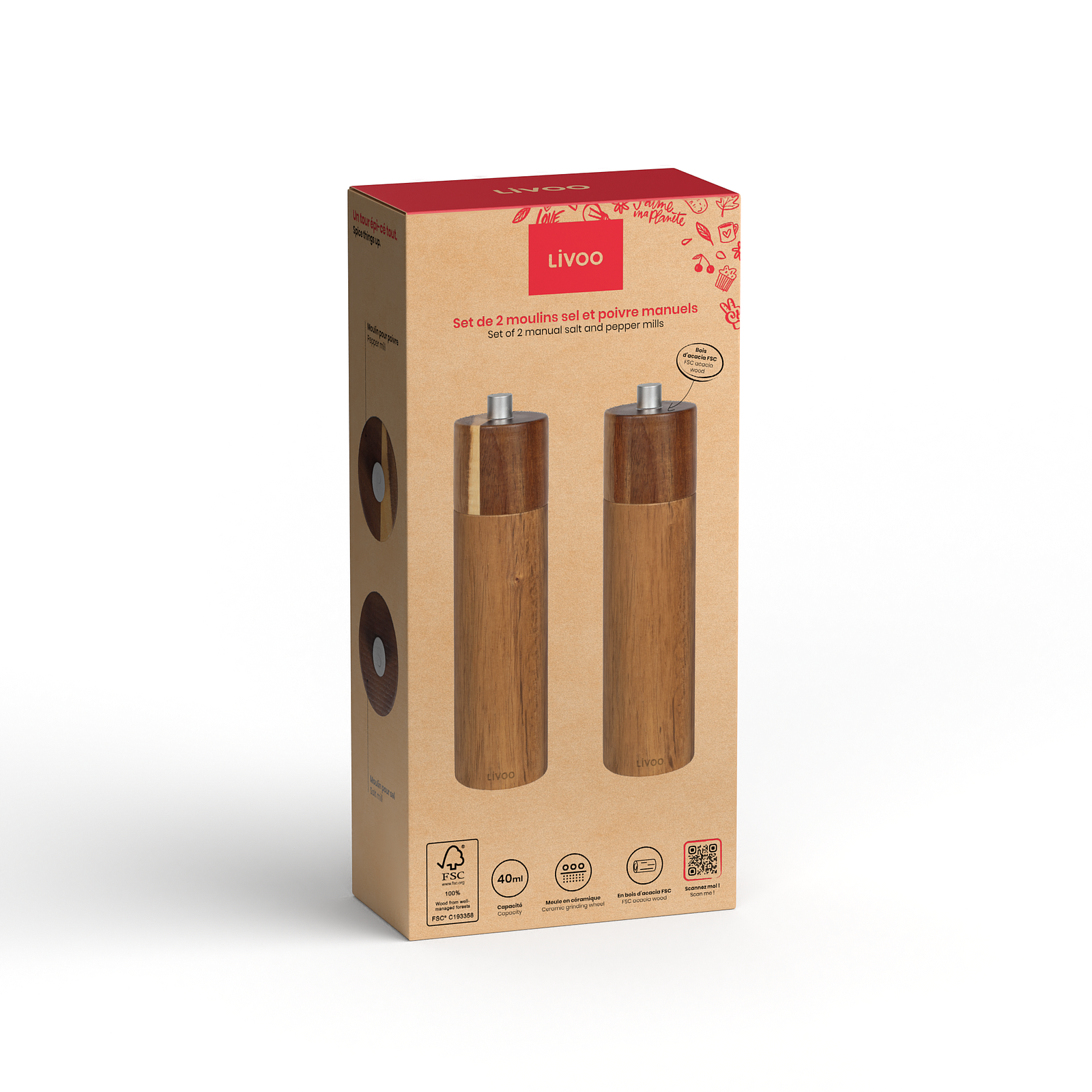 Set de moulins à sel et poivre en acacia, pour ajouter une touche d’élégance dans la cuisine