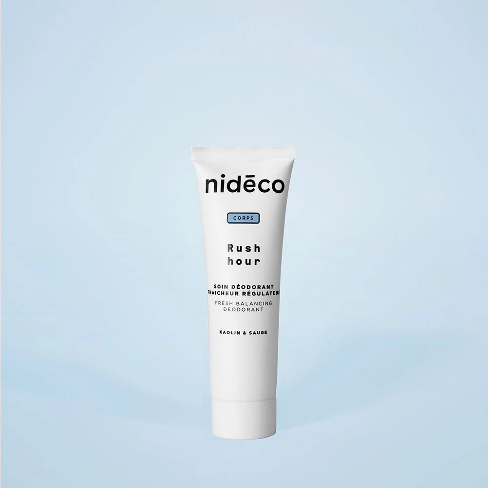 Formulé avec 98% d'ingrédients d'origine naturelle, ce déodorant contient des actifs comme le Kaolin, qui absorbe l'excès de sueur, et le Zinc Ricinoleate, qui neutralise les mauvaises odeurs. Il est également vegan et présenté dans un tube recyclable, reflétant l'engagement de Nidéco envers la durabilité et la protection de notre planète.