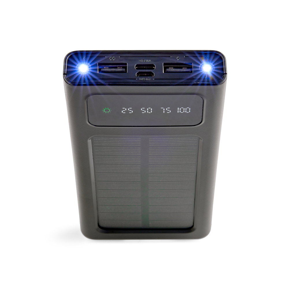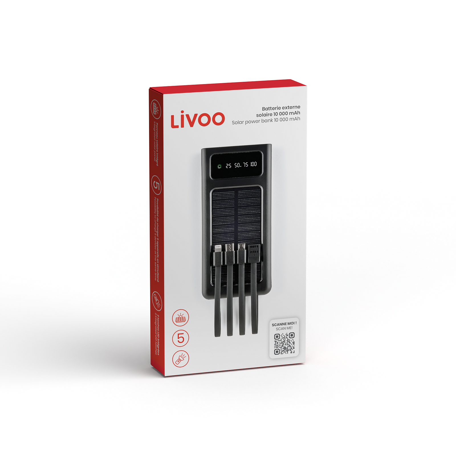 Une batterie externe solaire , idéale pour les utilisateurs recherchant une solution de recharge écologique et portable. Dotée d’une capacité de 10 000 mAh, elle permet de recharger plusieurs appareils simultanément grâce à ses deux ports USB et ses trois câbles intégrés (USB Type-C, micro-USB et Lightning). Son panneau solaire intégré offre une recharge autonome, pratique pour les déplacements ou les activités en plein air.