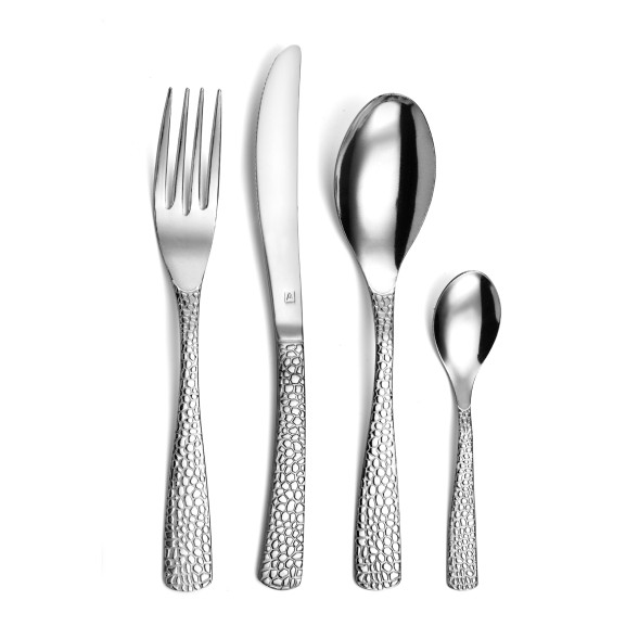 Apportez du caractère à votre table avec ces 24 couverts Amefa au design audacieux et martelé. Conçue pour 6 personnes, cette ménagère se distingue par sa finition brillante et son décor typé, qui ne passe pas inaperçu. Idéale pour un usage quotidien ou pour recevoir, cette ménagère allie style affirmé et fonctionnalité.