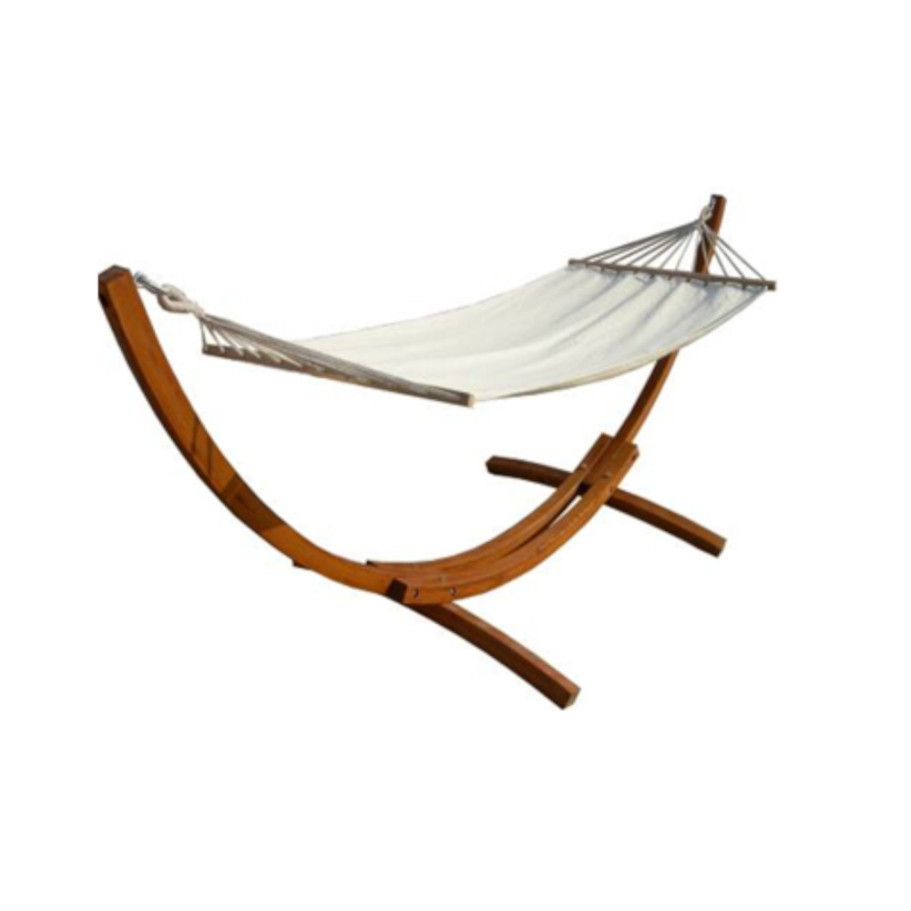 Laissez-vous bercer par cet ensemble hamac pour 1 personne. Sur une terrasse, un balcon ou dans un jardin, ce hamac qui invite à la détente trouvera vite sa place chez vous. Cet ensemble est constitué d'un supporte bois en mélèze FSC lamellé-collé et d'un hamac en toile 100 % coton couleur lin.