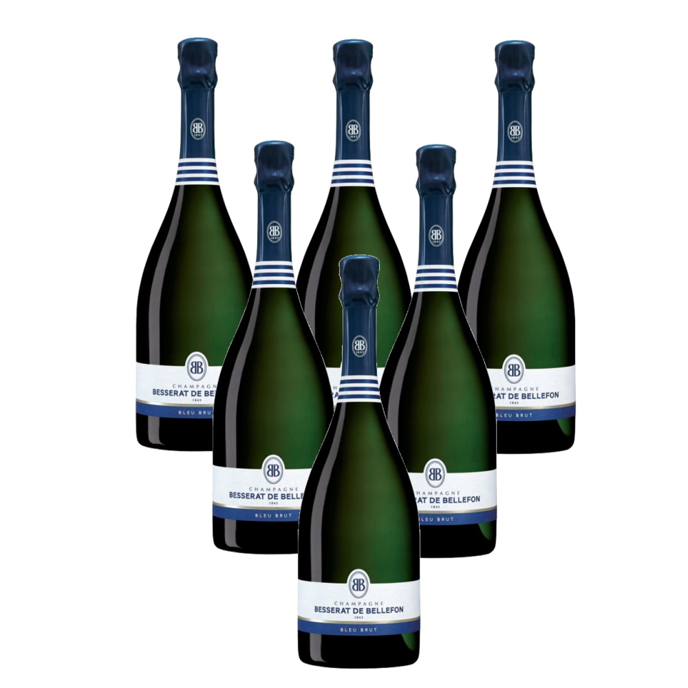 6 bouteilles de champagne Bleu brut Besserat de Bellefon de 75 cl.