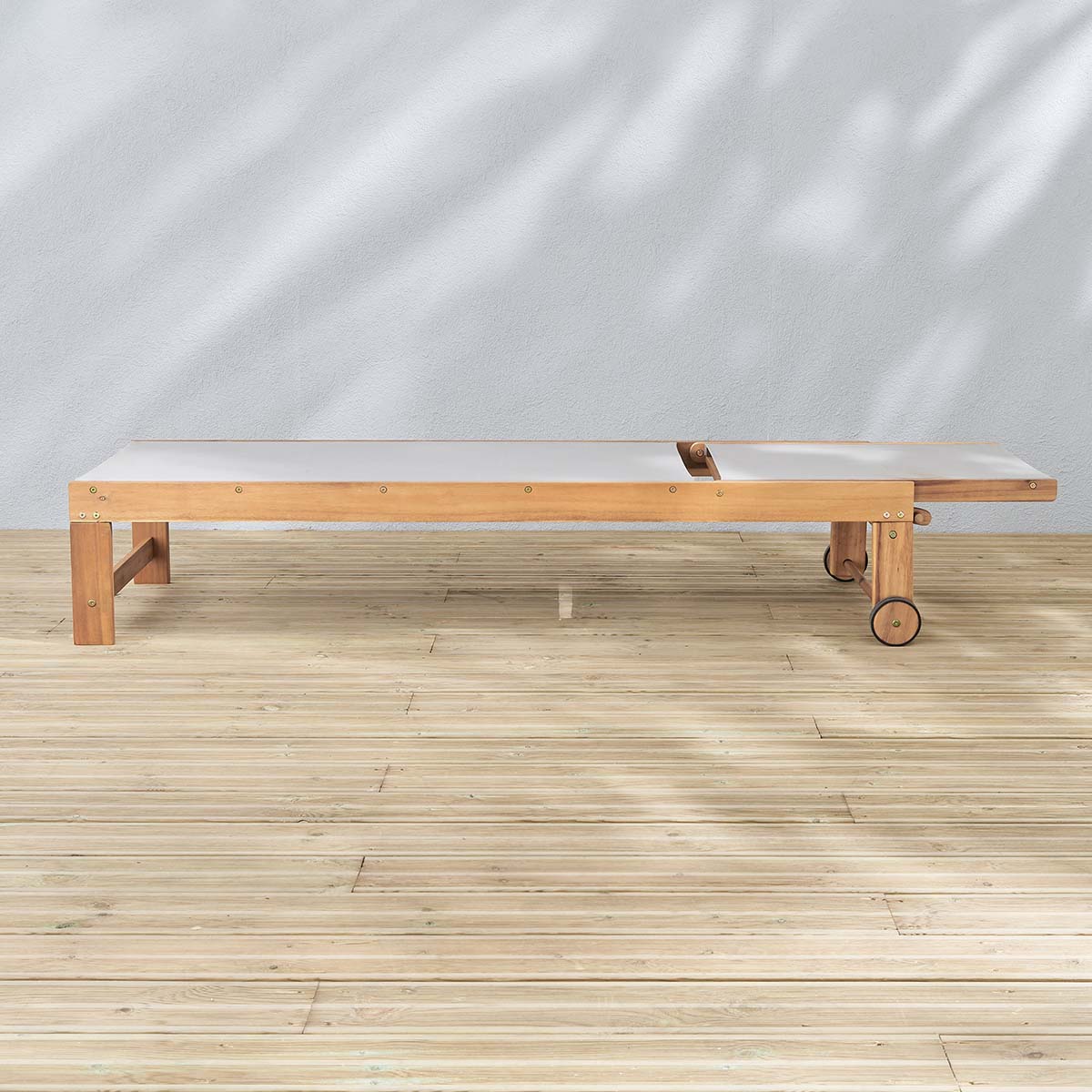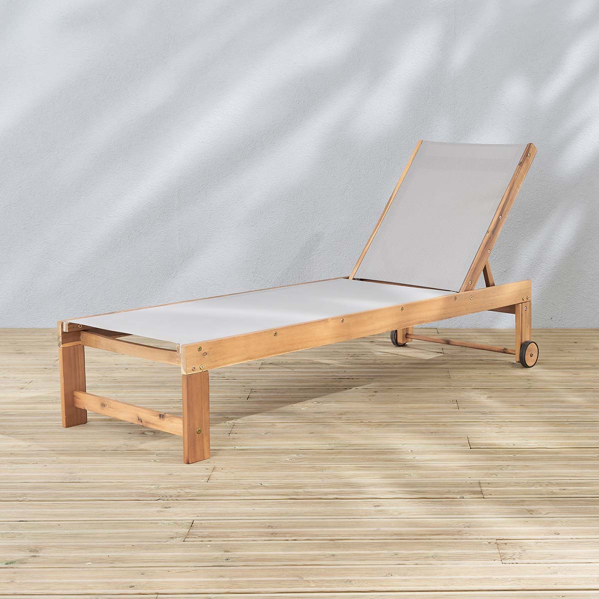 Les + : Bois d'acacia - Inclinable jusqu'à la position allongée.