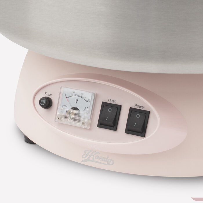 Equipped with a large stainless steel tank measuring 52 cm in diameter, the machine provides clouds of softness. Its non-slip supports ensure perfect stability, while the automatic temperature adjustment allows you to create cotton candy with the perfect texture.