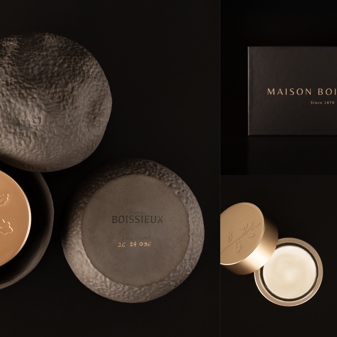 Accompagnant ce soin, une boîte truffe en porcelaine de Limoges, véritable trésor d’artisanat, numérotée et estampillée. Cette pièce d’une grande finesse illustre un savoir-faire exceptionnel, alliant tradition et modernité. Elle devient un objet précieux à conserver et un symbole d’élégance intemporelle, parfait pour agrémenter votre intérieur.