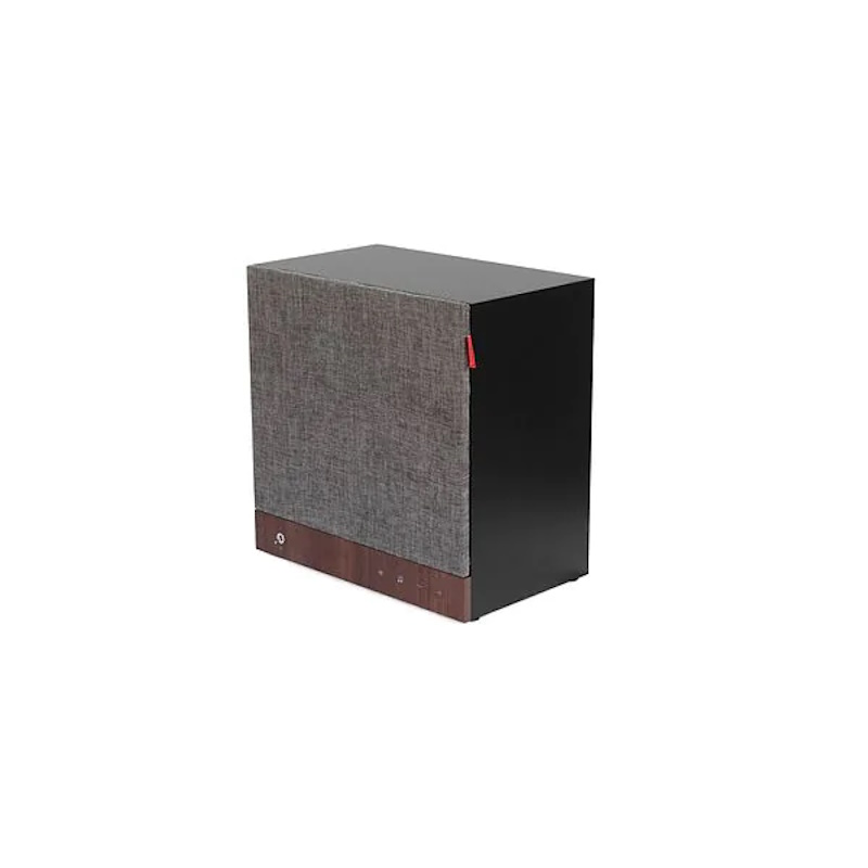 Sous son apparence minimaliste se cache une technologie audio avancée. Dotée de deux tweeters à dôme en soie de 19 mm et de deux haut-parleurs de 110 mm, elle délivre un son riche, équilibré et immersif. Son système bass-reflex à double évent frontal garantit des basses profondes même lorsqu’elle est placée contre un mur. Grâce à son amplification quadruple (60W RMS / 100W max) et son filtre actif DSP, elle offre une restitution sonore fidèle, que ce soit pour une écoute musicale détendue ou une ambiance plus dynamique.