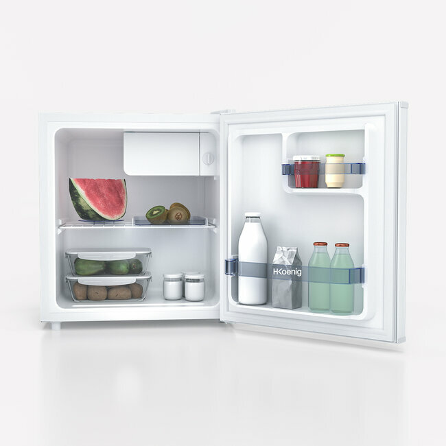 Grâce à ses dimensions ultra compactes et sa porte réversible, le mini réfrigérateur s’adapte à tous les petits espaces. D'une hauteur de 51 cm et d'une capacité de 45 litres il intègre un compartiment à glaçons de 4 litres et une clayette en verre. Outre son faible encombrement, le mini réfrigérateur possède un thermostat ajustable qui vous permettra de choisir la température idéale de conservation pour vos aliments.