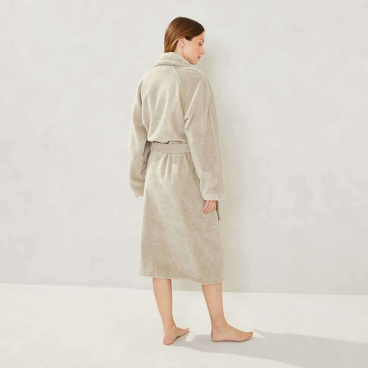 Ce peignoir offre une douceur exceptionnelle et une absorption optimale. Avec son design élégant et ses finitions soignées, il allie confort et luxe. Sa coupe ajustable et ses poches pratiques en font le choix idéal pour des moments de détente.