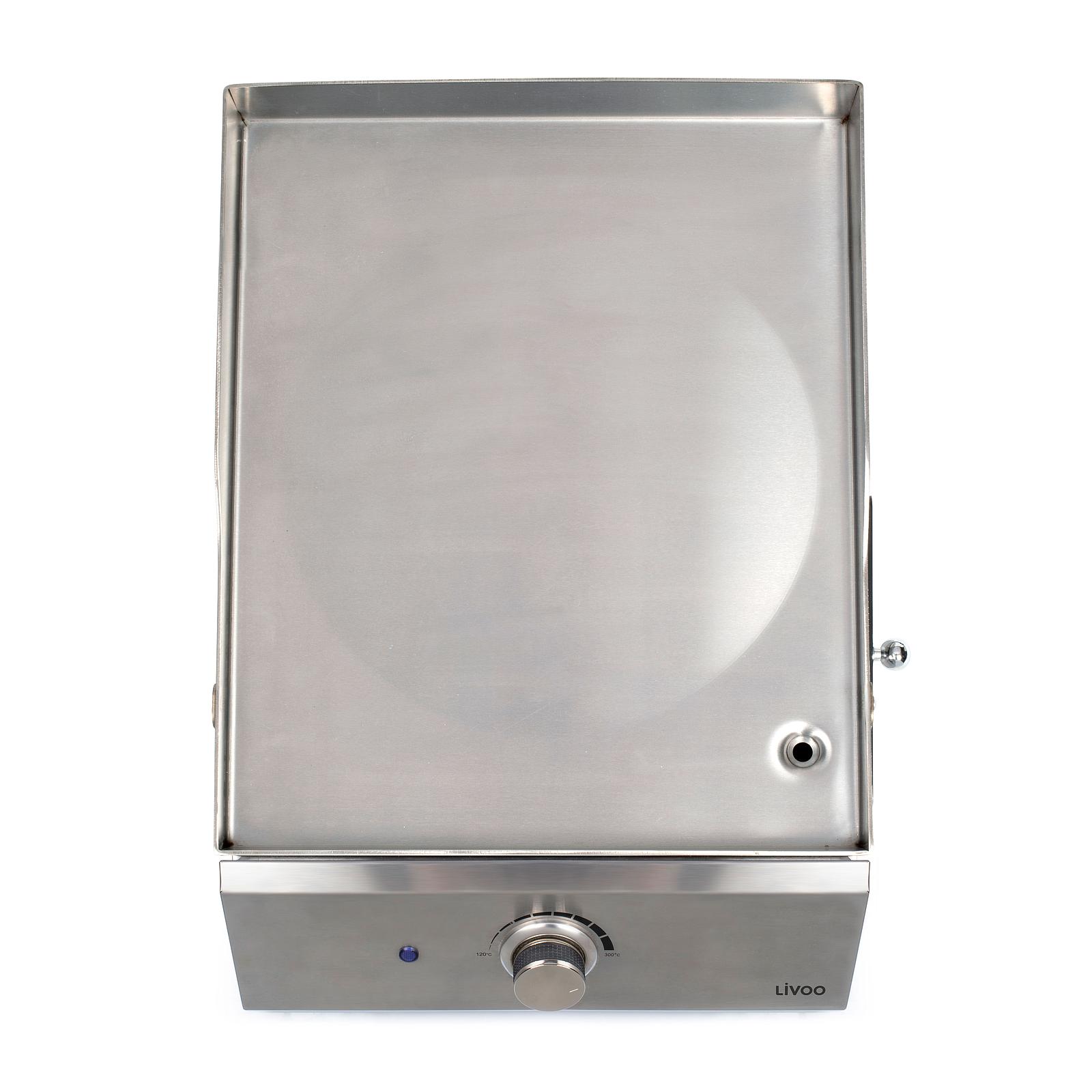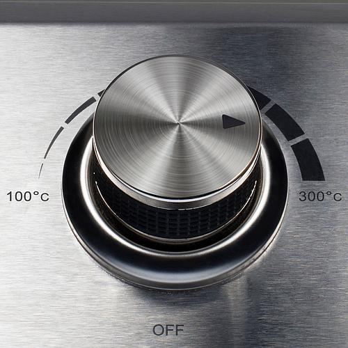 Avec une puissance de 2800 W, la plancha chauffe rapidement, garantissant une cuisson uniforme de tous les aliments et une montée en température rapide. Le thermostat ajustable jusqu'à 280°C, accompagné d'un témoin lumineux, offre un contrôle total sur la température, te permettant de cuisiner avec précision selon les préférences.