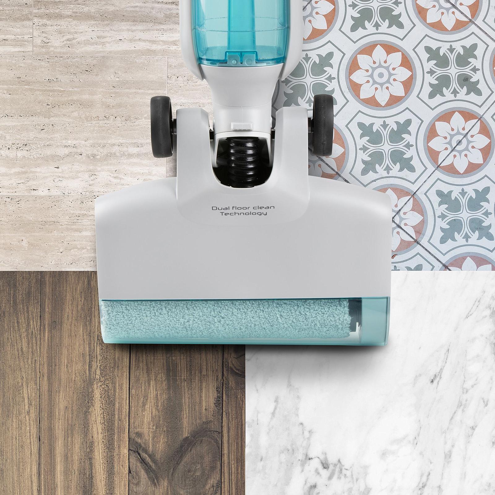 Ce nettoyeur de sol avec aspiration sans fil simplifie totalement l’entretien des sols grâce à son système 2‑en‑1 sans fil, qui combine aspiration et lavage électrique en un seul passage. Équipé d’une batterie Li‑Ion 21,9 V et d’une brosse rotative, il assure un nettoyage en profondeur sur tous les sols durs, y compris le parquet. Son fonctionnement à eau propre est garanti par un double réservoir, permettant d’éliminer efficacement saletés et poussières tout en économisant jusqu’à 90 % d’eau par rapport aux méthodes traditionnelles.