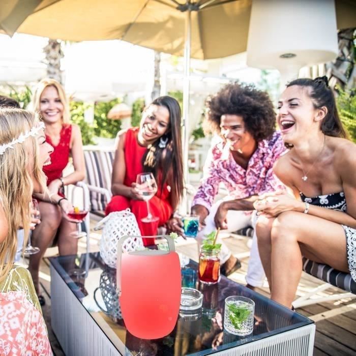 Créez votre atmosphère aussi bien lumineuse que décorative avec cette lampe nomade d'extérieur.
