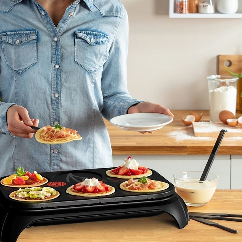 Cet appareil éco-conçu est doté d'une plaque pour réaliser 6 mini-crêpes.