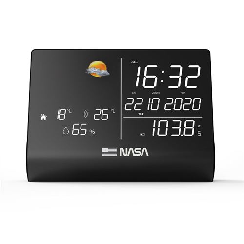 Station météo et enceinte Bluetooth Nasa WSP1300 avec radio-réveil Noir