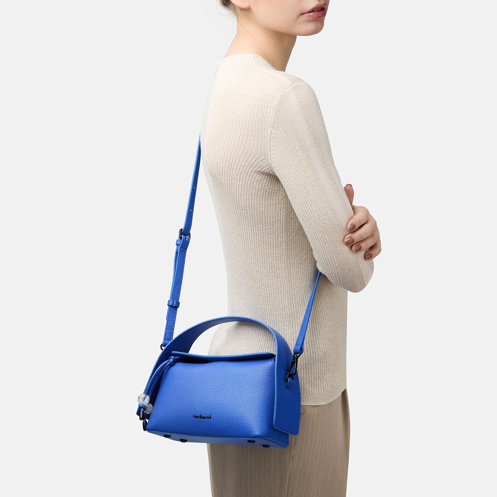 Ce sac à main Cacharel séduit par son allure résolument moderne, sublimée par un cuir vegan grainé mat (PU) dans une teinte bleu cobalt éclatante. Sa silhouette compacte (210 x 85 x 130 mm) est mise en valeur par des lignes nettes et une poignée au design inattendu, qui lui confère une touche d’originalité. Les finitions en métal noir mat ajoutent une note sophistiquée et urbaine, tandis que le logo emblématique "Cacharel" sur le devant et la plaque "C" au dos signent l’élégance discrète de la maison.