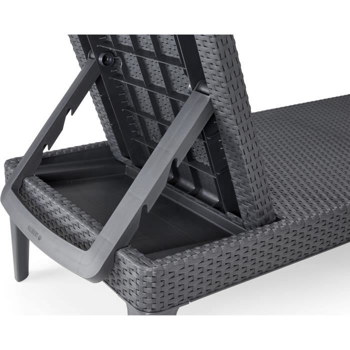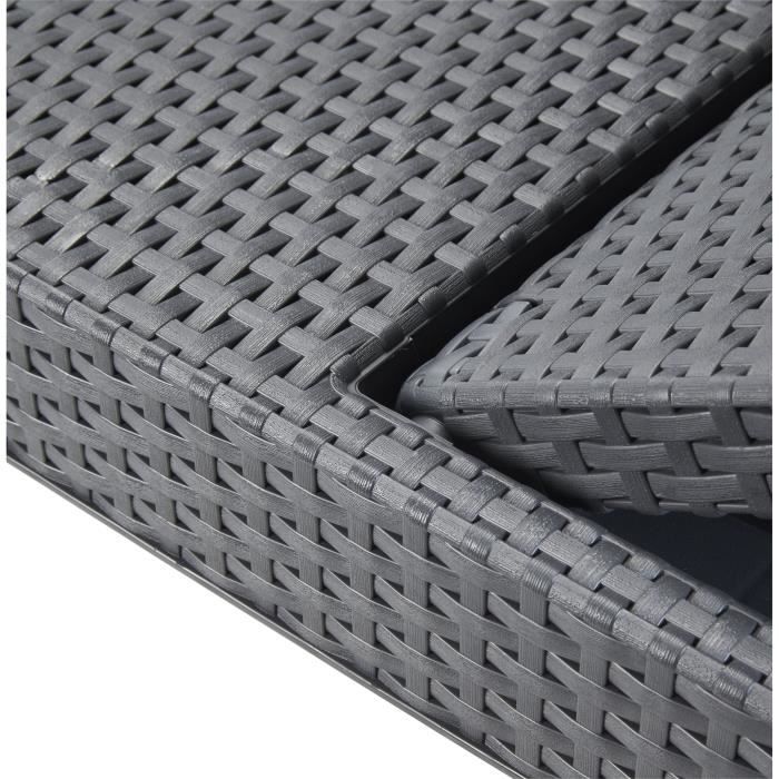 Bain de soleil imitation rotin en résine de synthese (polypropylene - Caco3), graphite - Il peut etre démonter pour un rangement facilité - A monter soi-même - 187 x 58 x 29 cm