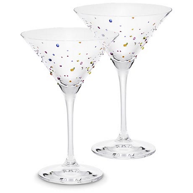 Add color to your table or during your aperitifs with this elegant pair of Swarovski martini glasses . each glass features 50 stones in ruby, rose, majestic blue, tangerine, citrine and fern green, a duo that makes a unique and memorable statement.