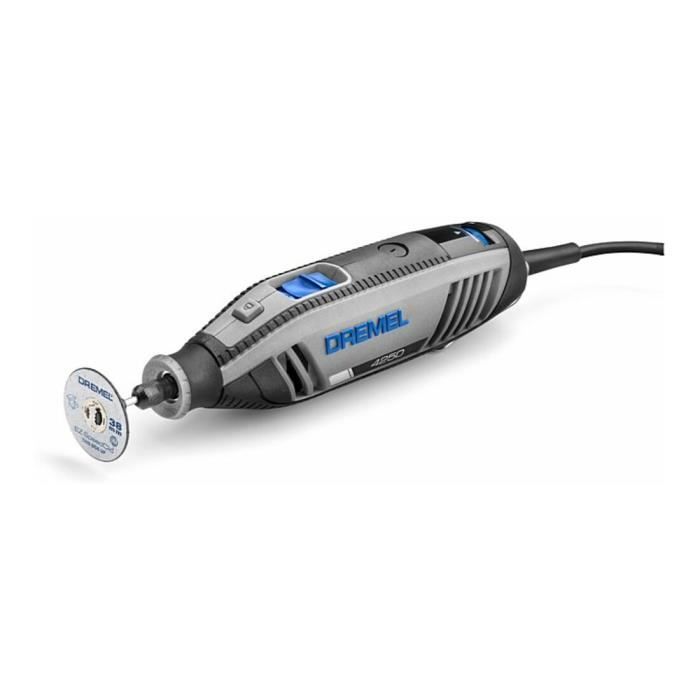 Accessoires livrés Livré dans un sac de rangement en tissu avec un outil Dremel 4250, 35 accessoires Dremel de haute qualité, une fiche d'informations sur les accessoires et un manuel