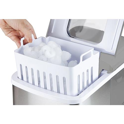 L’appareil est entièrement automatique et peut produire jusqu’à 12 kg de glaçons en 24 heures. Vous pouvez également faire des glaçons et les congeler afin d’avoir un stock complet à portée de main. Les témoins lumineux indiquent que le réservoir d’eau est vide ou que le panier à glaçons est plein.