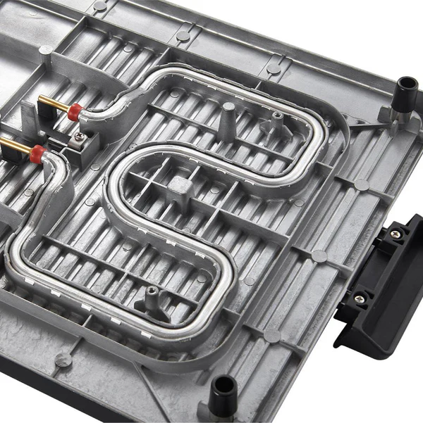 Résistances coulées dans la fonte, directement intégrées à la plaque de cuisson pour une diffusion homogène de la température, sans déperdition de chaleur - Plaque de cuisson amovible, détachable par un simple clip : C'est plus facile et plus pratique pour l'entretenir et la nettoyer