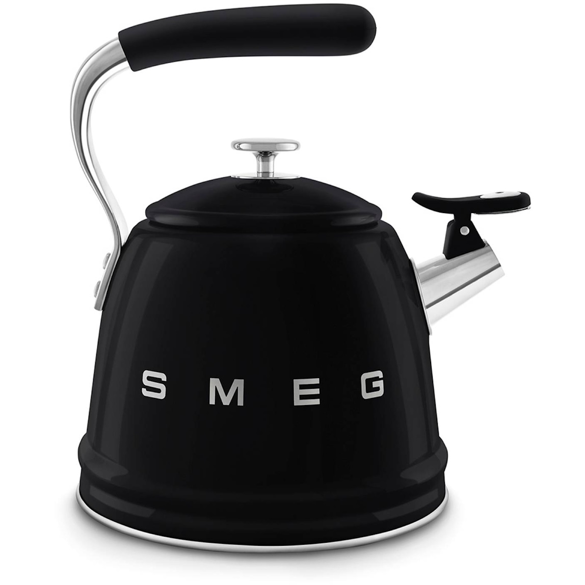 Craquez pour cette bouilloire sifflante noire de la marque italienne Smeg. Avec son look rétro des années 50, cette bouilloire compatible tous feux (induction, gaz, vitrocéramique, électrique) dispose d'une capacité de 2.3 L, d'un couvercle amovible et d'un corps et bec verseur en acier inoxydable.