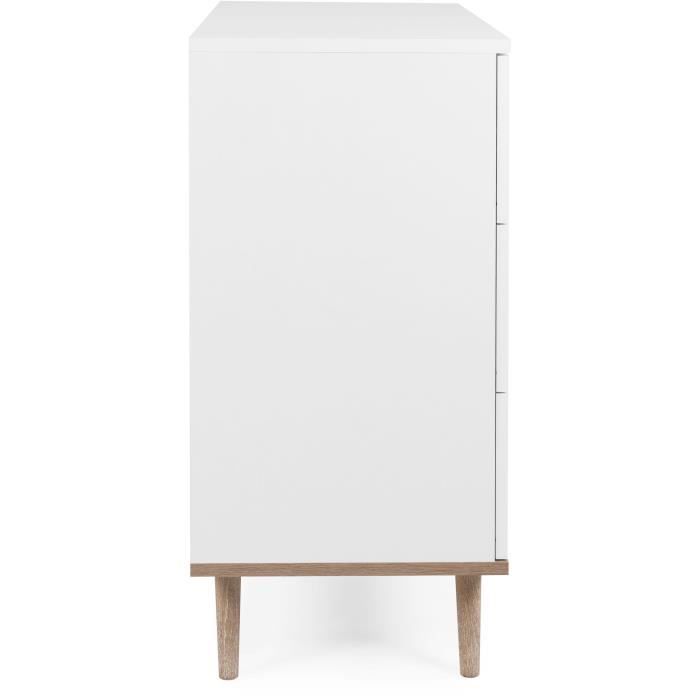 Un meuble aux allures de déco scandinave ? Monté sur 4 pieds en bois massif, la commode GOTEBORG dispose de 3 grands tiroirs où vous pourrez y ranger vos vêtements ou encore votre linge de lit. Sur son grand plateau supérieur vous pourrez y déposer des cadres photos, un bouquet de fleurs et d'autres objets décoratifs pour ajouter une note de charme à cette commode.