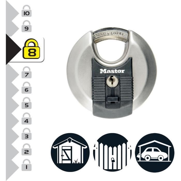 Ce modèle se distingue par ses fonctionnalités modernes. Grâce à l'application Master Lock Vault, vous pouvez partager des accès temporaires ou permanents avec d'autres utilisateurs, suivre l'activité du cadenas, et recevoir des alertes en cas d'intrusion ou de batterie faible. Son anse en alliage de bore offre une résistance optimale contre les tentatives de coupe, tandis que son corps solide en métal garantit une durabilité exceptionnelle. De plus, son design étanche le rend adapté à une utilisation en extérieur.