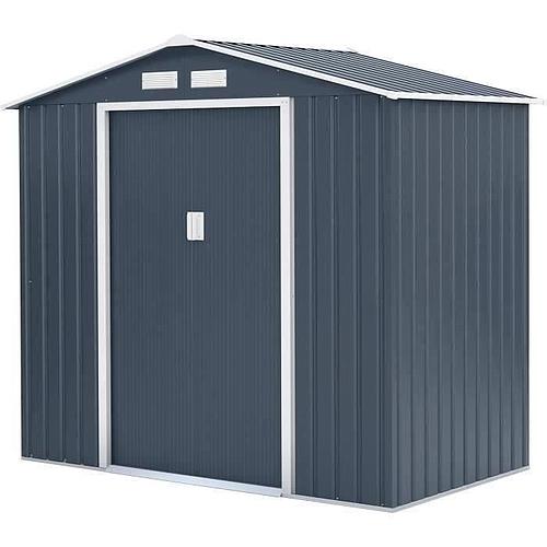 Description du produit Abri de jardin acier 2,71 m² avec kit d'ancrage inclus Dimensions hors tout: 2,13 m (largeur) x 1,27 m (profondeur) x 1,62 - 1,95 m (hauteur) Surface hors tout: 2,71 m² Dimensions intérieures: 2,03 m (largeur) x 1,17 m (profondeur) x 1,62 - 1,95 m (hauteur) Surface utile: 2,37 m² Panneaux en acier 0.25 mm traité anti-corrosion et structure en acier galvanisé 0.5-0.8 mm Coloris gris anthracite